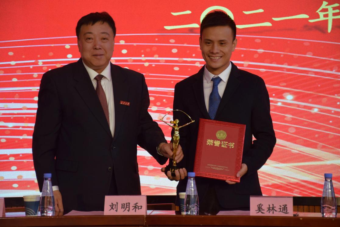 欧阳韬宣读2021年“第一届长安大学路蓝奖学金”获奖学生名单。与会领导嘉宾为获奖学生颁发荣誉证书。刘明和为奚林通颁发捐赠证书。