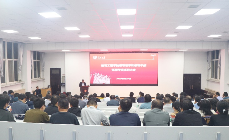 9月27日晚,188金宝搏bet官方登录 在校本部西院综合楼报告厅召开领导班子和领导干部任期考核述职大会,全院教职员工参加会议,会议由院长邢国华主持。