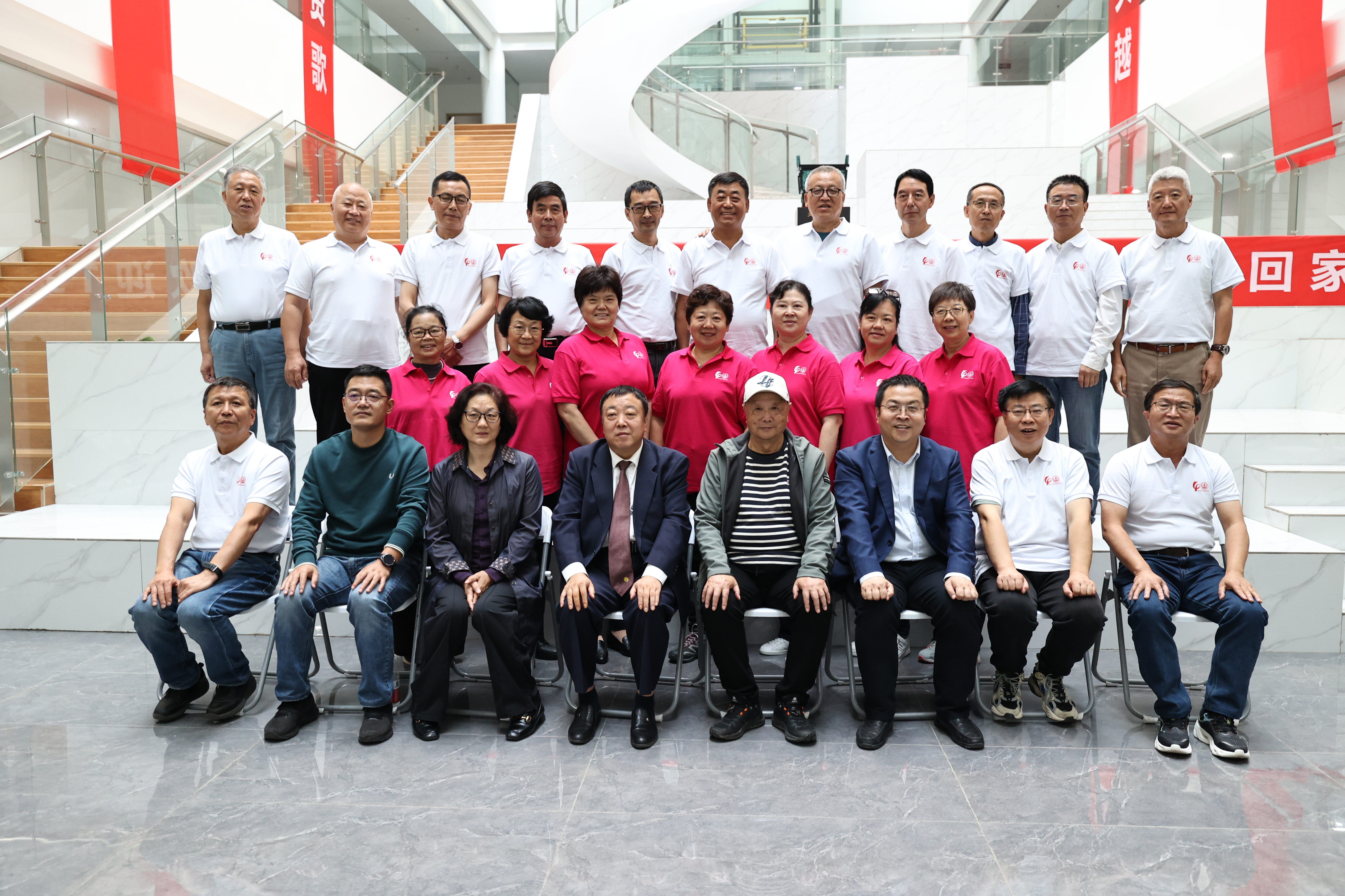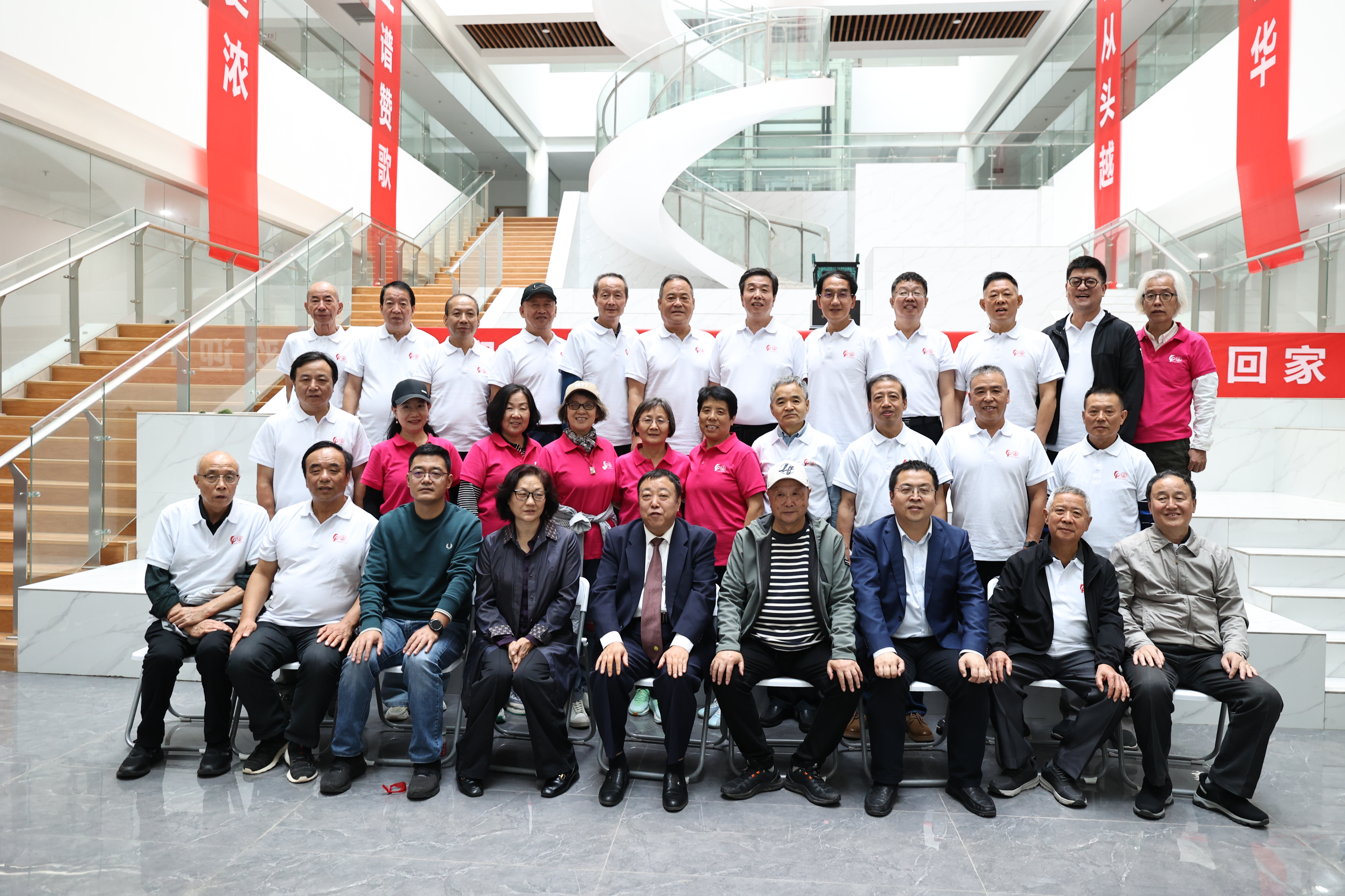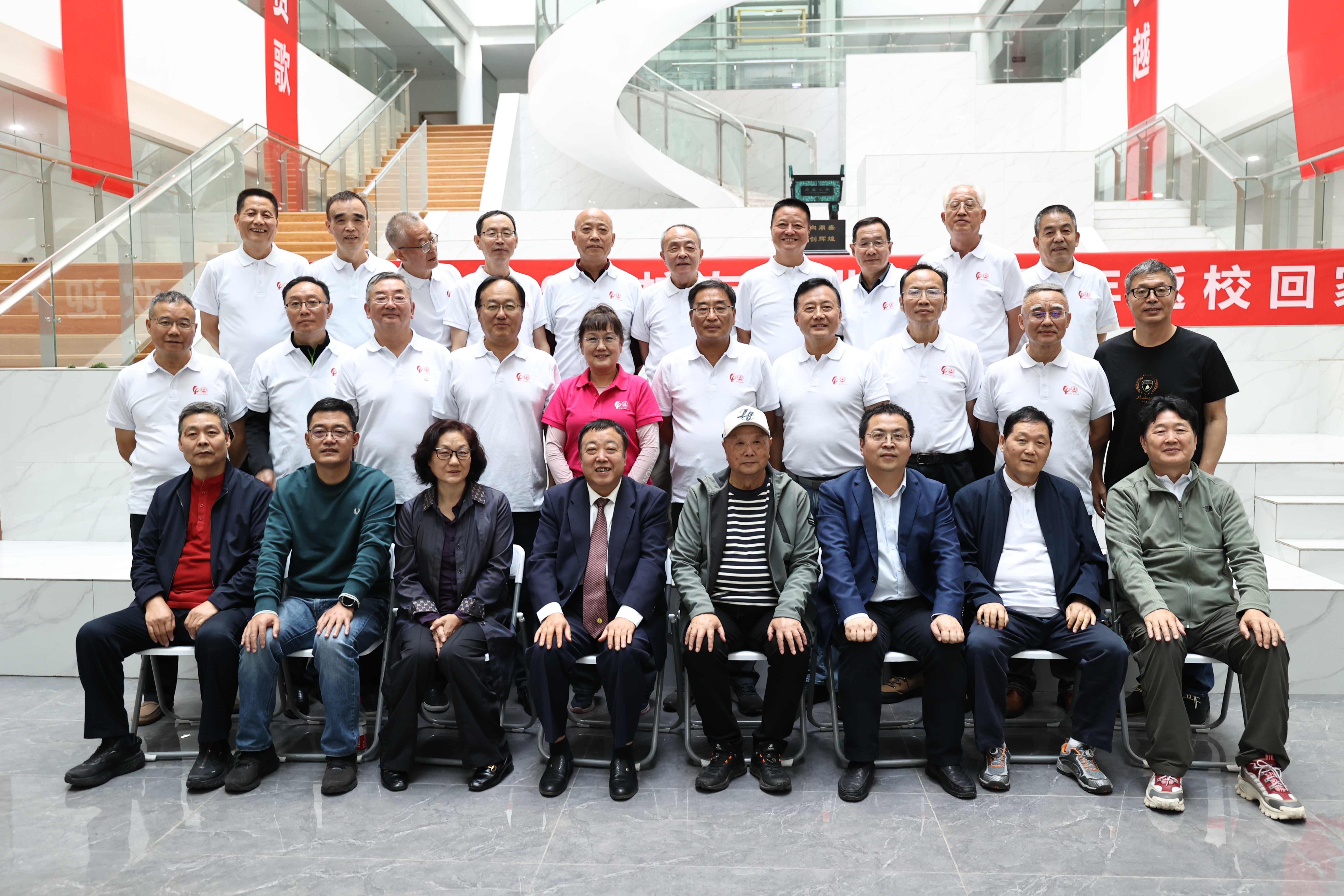 校友们集体参观了建工学院渭水校区办公楼。刘明和书记对校友们的到来表示欢迎,他简要介绍了学院新大楼的整体规划和学院概况,祝福校友们晚年生活“耳顺、心宽、体健、筑梦”。邢国华院长介绍了学院专业建设、科学研究等情况,希望与校友们加强与学院的沟通交流,共同开创学院高质量发展新局面。