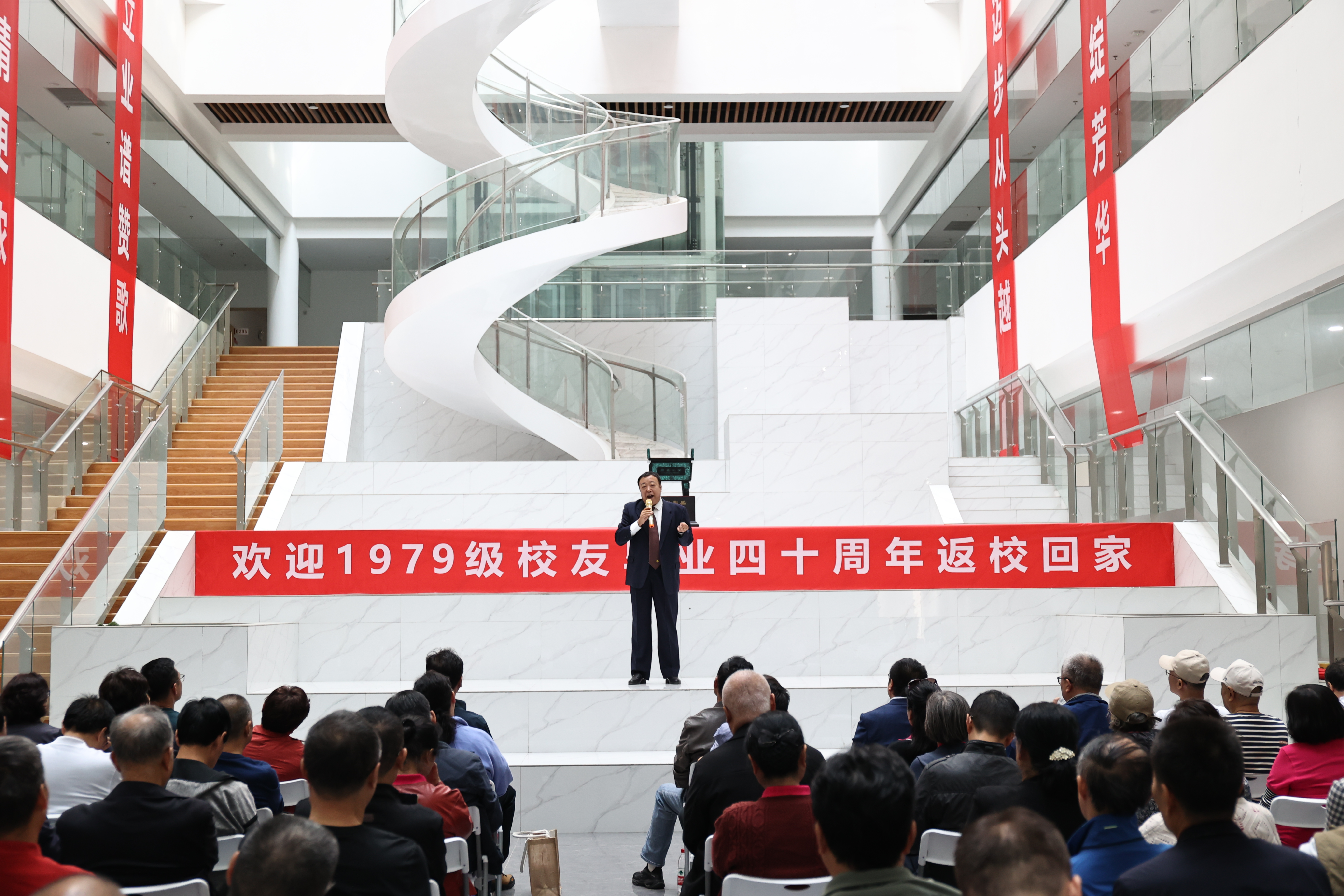 四十年各奔西东,今聚长安情更浓。校友官燕玲、王双德、臧建敏发言,毕业四十年,再续同窗情,他们对母校表达了深厚的情感,回忆了在母校的青春岁月,向母校汇报了40年为祖国建设作出的贡献。