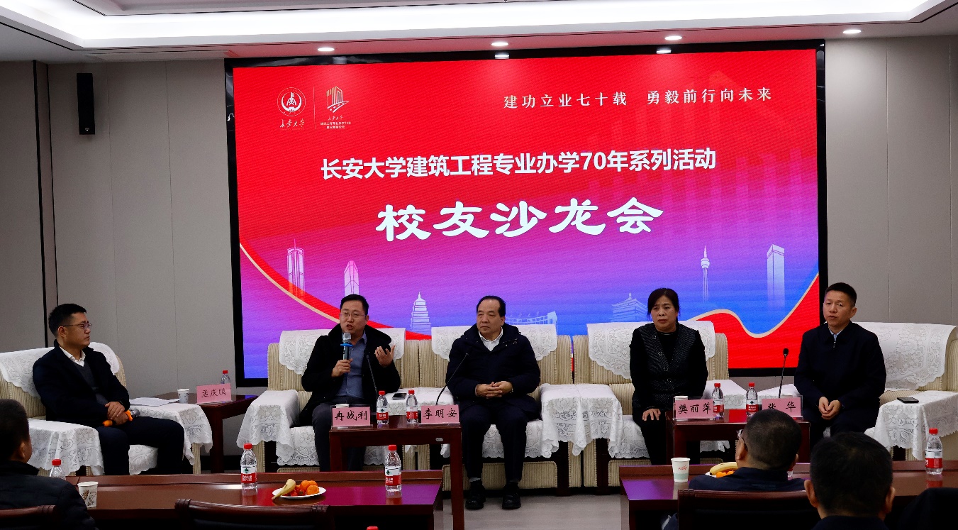 12月29日下午,长安大学建筑工程专业办学70年系列活动之校友沙龙会在致远大厦学院第一会议室举行,主讲的4位嘉宾有中国土木工程学会秘书长李明安、西北综合勘察设计研究院院长助理樊丽萍、陕西建工铁建工程有限公司党委书记董事长张华、西安城市更新投资有限公司董事长冉战利,出席沙龙会的还有学院院长邢国华教授、党委副书记孟庆鹏、副院长李晓光教授,近50名校友和在校师生参加沙龙会,校友沙龙会由学院党委副书记孟庆鹏主持。