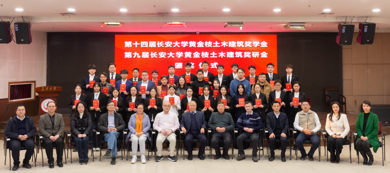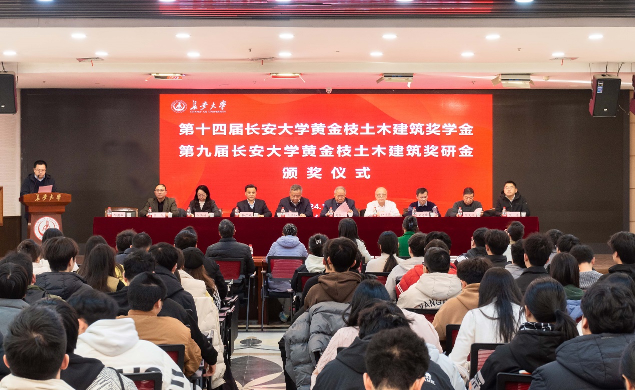 12月27日下午,第十四届长安大学黄金枝土木建筑奖学金暨第九届长安大学黄金枝土木建筑奖研金颁奖仪式在北校区长安文化艺术中心三楼多功能厅举行。上海黄金枝教育发展基金会理事长黄金枝,副理事长印晓晴,副理事长兼秘书长黄建峰,同济大学土木工程学院教授屈文俊,捐赠人代表冯晓慧、左明,我校副校长陈建勋,社会合作处处长、教育基金会理事长杨红斌,学生资助中心主任张晓琳,188金宝搏bet官方登录 党委书记吴涛,建筑学院党委书记贾侃,188金宝搏bet官方登录 党委副书记马熠航,建筑学院党委副书记王妍婷出席颁奖仪式。全体获奖师生、两院辅导员和学生代表200余人参加颁奖仪式。仪式由188金宝搏bet官方登录 院长邢国华主持。