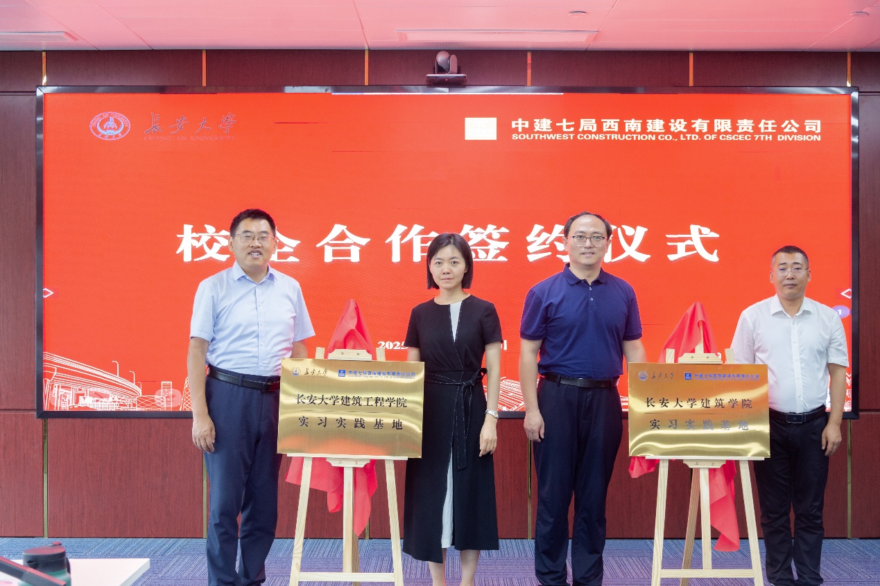 在中建七局西南公司,吴涛、贾侃分别与公司助理总经理、人力资源部(干部人事部)总经理赵艳玲、副总工程师南学飞签署合作协议,共建“长安大学就业实习基地”。赵艳玲提出精准人才输送、深化培养合作、互通科研交流三点期望;南学飞聚焦行业痛点,呼吁校企共同破解“人才转化效率低、专业适配性不足、产学研衔接薄弱”等难题。校友代表韩秋石、赖凌莹分享成长经验,为母校教学优化改革建言献策。
